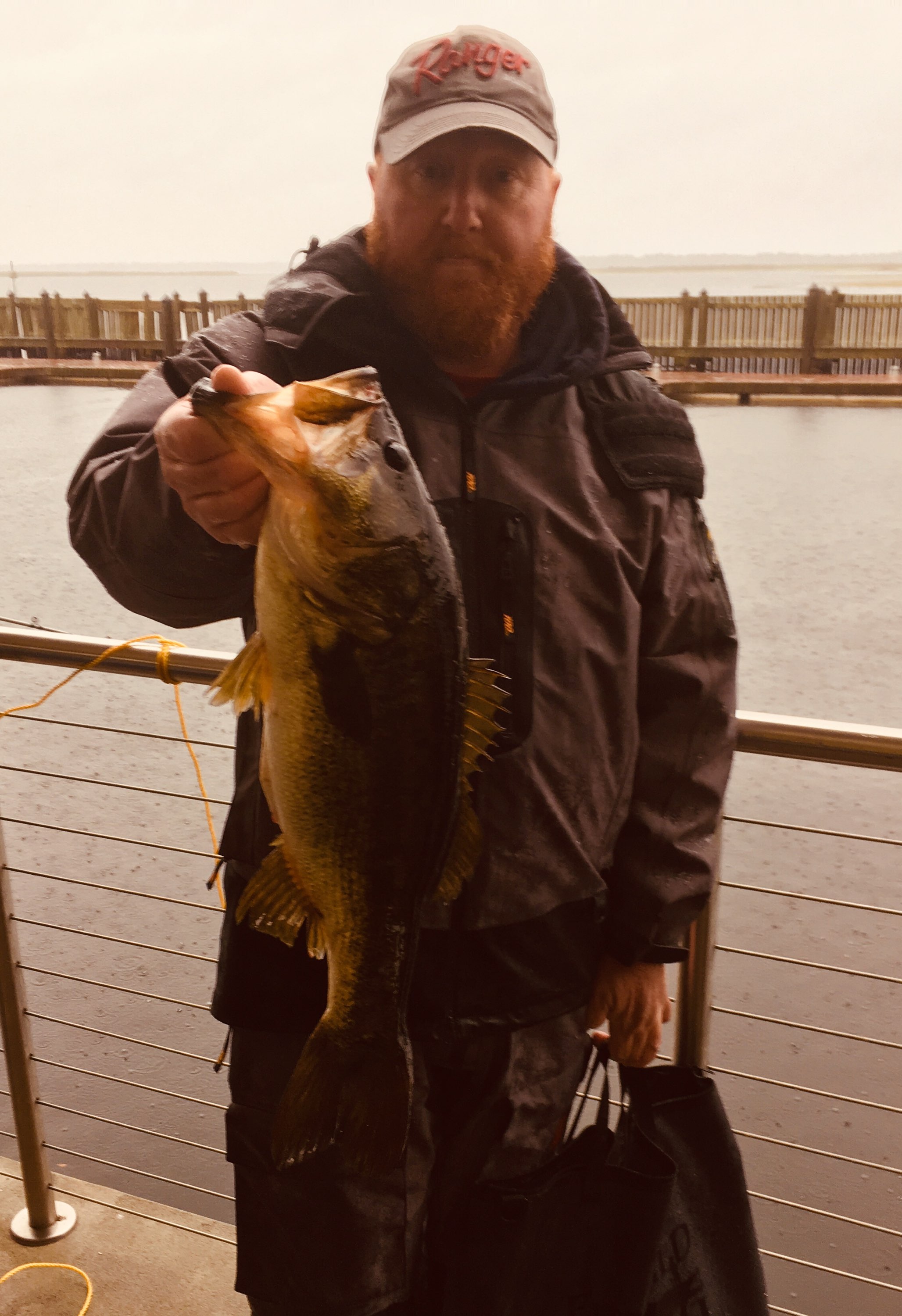 There was not much you can say about the Space Coast Bass Finatics tournament last Sunday the 27th of January on West Lake Toho that would make you smile except that it is over. The eighteen teams that braved the rainy and windy weather knew it was gong to be a tough day on the water and even harder to catch a limit and it certainly was. There were some good excuses for not fishing by the missing members and maybe they were right but they did miss some things that may not come by again. There was the crowded launch ramp with all the MLF pros fishing for their upcoming event, some loose boats that came into contact with other boats, the inevitable ramp altercation and the question of why did we pick this day to fish. Several of the members got to talk with some very nice pros that were more than happy to spend time at the ramp under cover of the canopy, especially Paul Elias who was more cordial and very friendly. A couple of the members even got in on the picture taking by the MLF photographer who was really nice to everyone. Check out the MLF website for proof. The take off was slow, as some team members were reluctant to leave the safety of the porch canopy at first light, but eventually all teams got off to a good start except for one. Just to make things a little bit worse, Keith Braun decided it would be better to be completely wet by 9:30 am so he fell in while saving a fishing rod from going over board. Nice move Keith! He still fished all day without changing his clothes. There were some teams that returned with a limit (6 total) and some did not even fish the entire day, like Jimmy and Jack who decided that 1'o'clock was a good time to call it quits for the day.