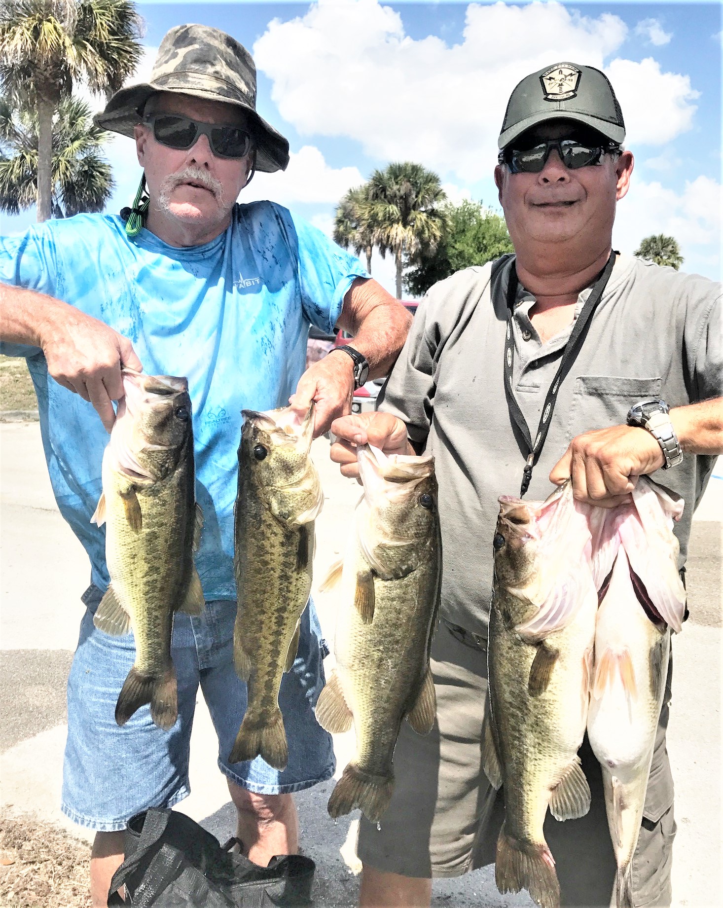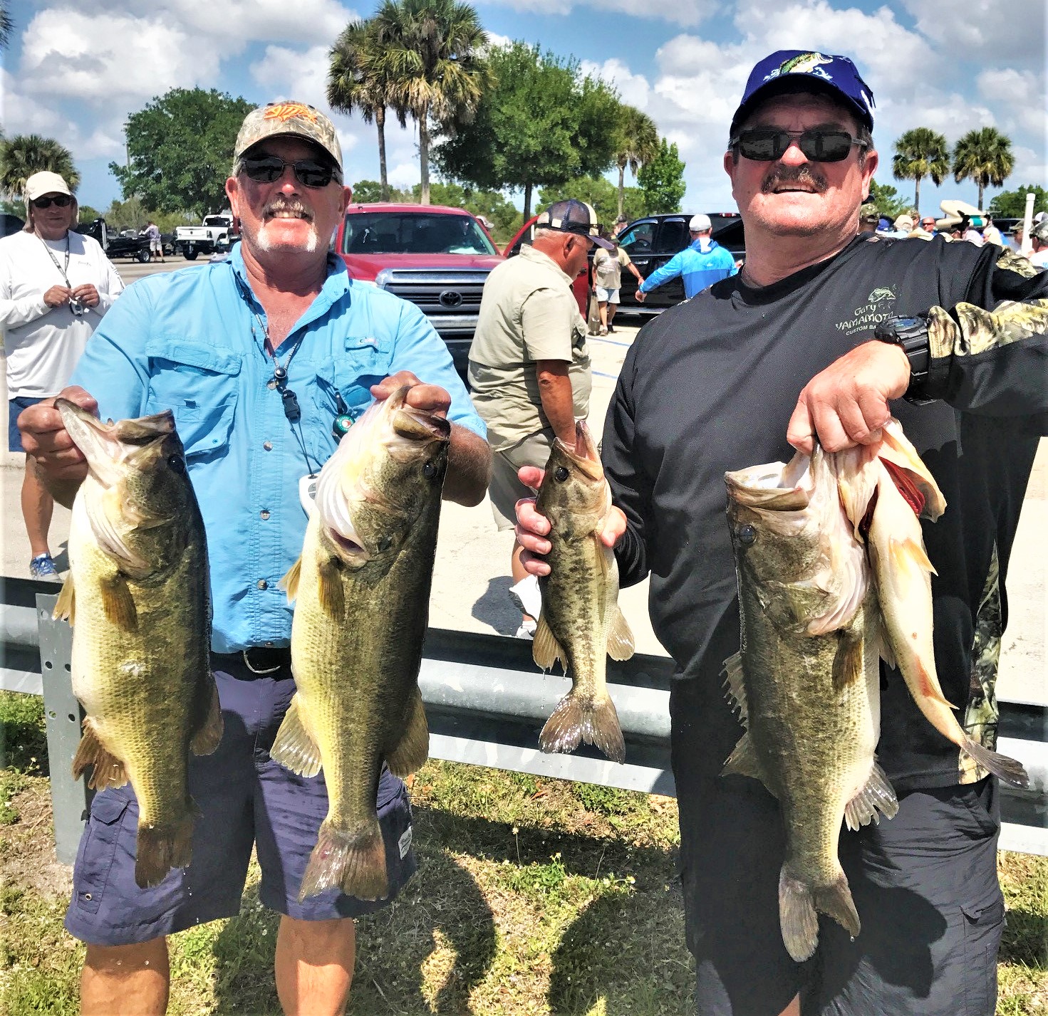 I hope to see all the club members back for our next tournament at Blue Cypress Lake on the 19th of May. A special thanks goes out to the club members who have stepped up in the absence the two club officers, Wayne Smith and Alan Elder for checking boat live wells and lights, Dwayne Haga at the weigh-in and Erick Pickton for all the great photo's. Even with the thirty-eight boats at the launch ramp things went off pretty smoothly as everyone made their way onto the lake. All except President Bill, who miss judged the location of one of the many sandbars and severely damaged his lower unit and the Taylor brothers who found a cypress log somewhere on the north end of the lake and damaged their skag and prop. Not to mention the many hydrilla clogged intakes, airboat silt trails and hard bottom take offs and aerator malfunctions that happen to some of the participants. This was still one of our best tournaments of the year with over 300 hundred pounds of bass weighed in along with six fish over twenty-two inches long being brought to the scales and all but three teams recording a limit.