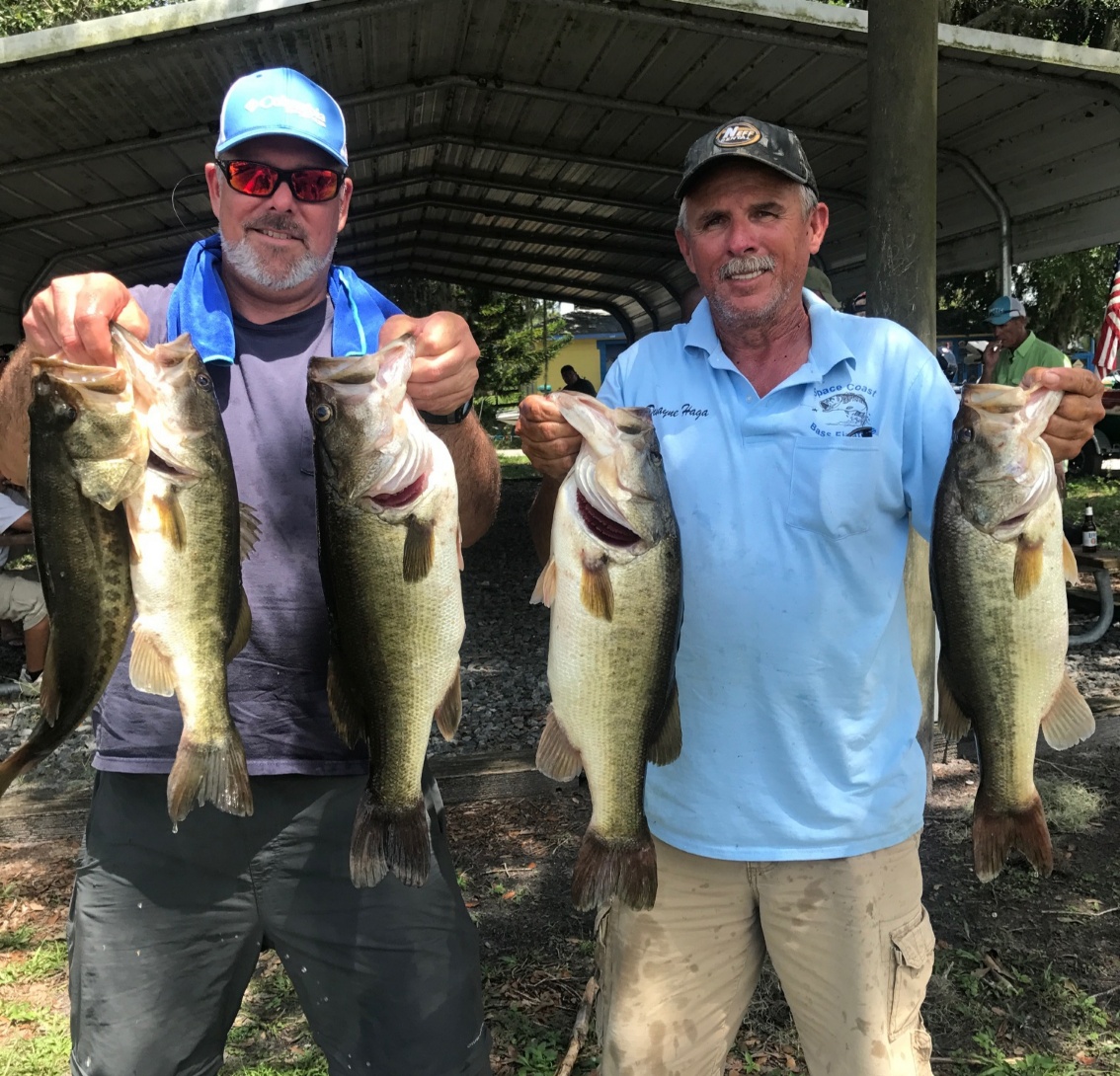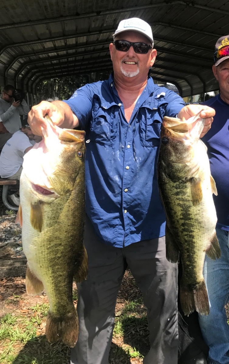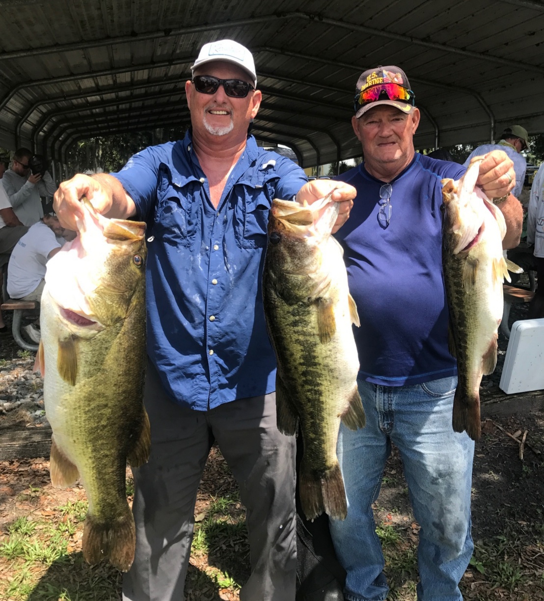 Third place goes to Gary Hinman of Palm Bay and Matt Hinman of St. Cloud with 18.98 pounds. Their bag was anchored by a huge 7.49 pound big one which was the second largest of the day. They casted swimbaits all day around the Kissimmee grass to fill out their limit.