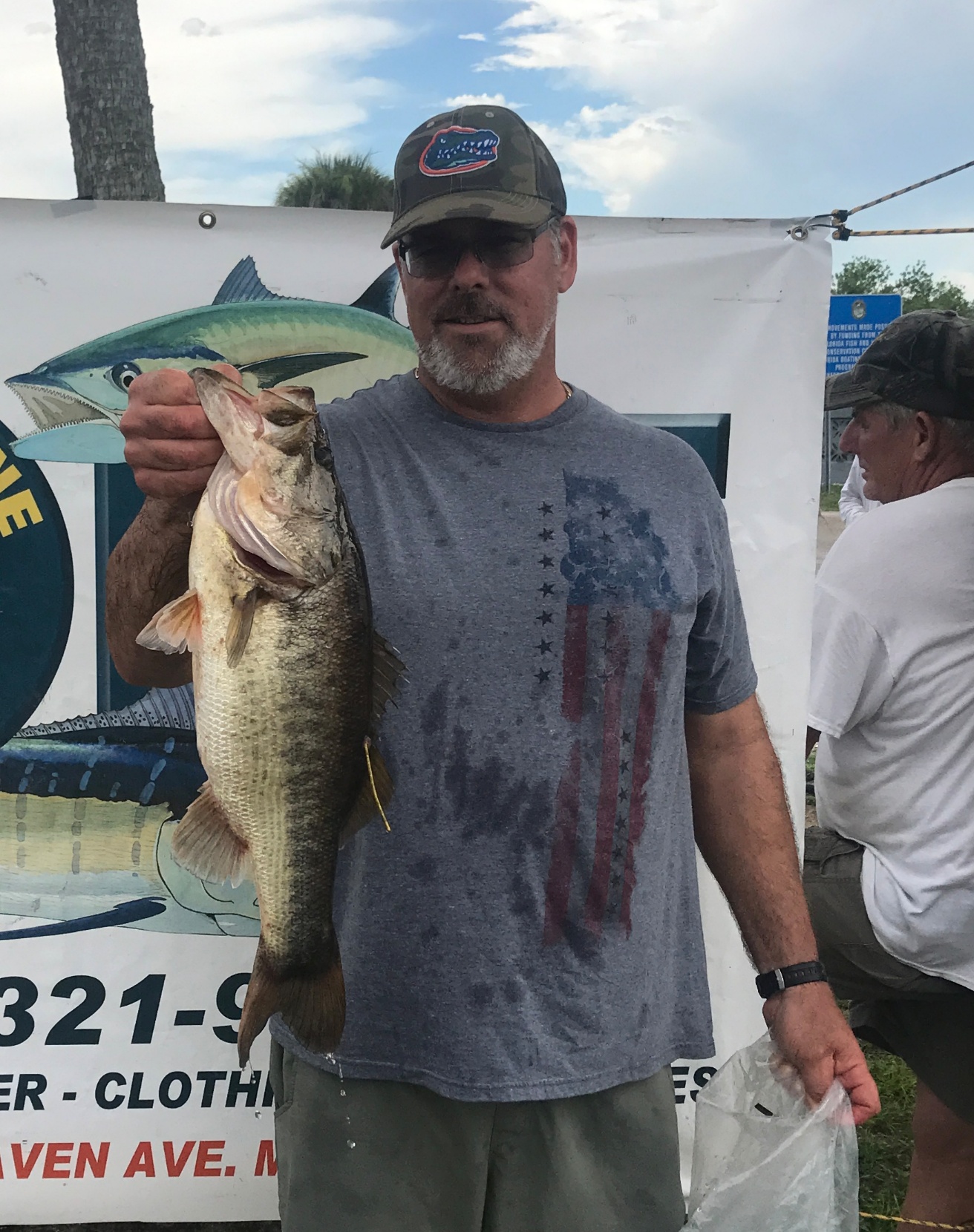The tournament Big Bass goes to Dave Metzler of Debary who's 5.85 pound large mouth was the fish of the day. Using what he described as a stupid white top water old plug other wise known as a Zara Spook, he hooked the big bass some where up by the water intake structure. Nice Job