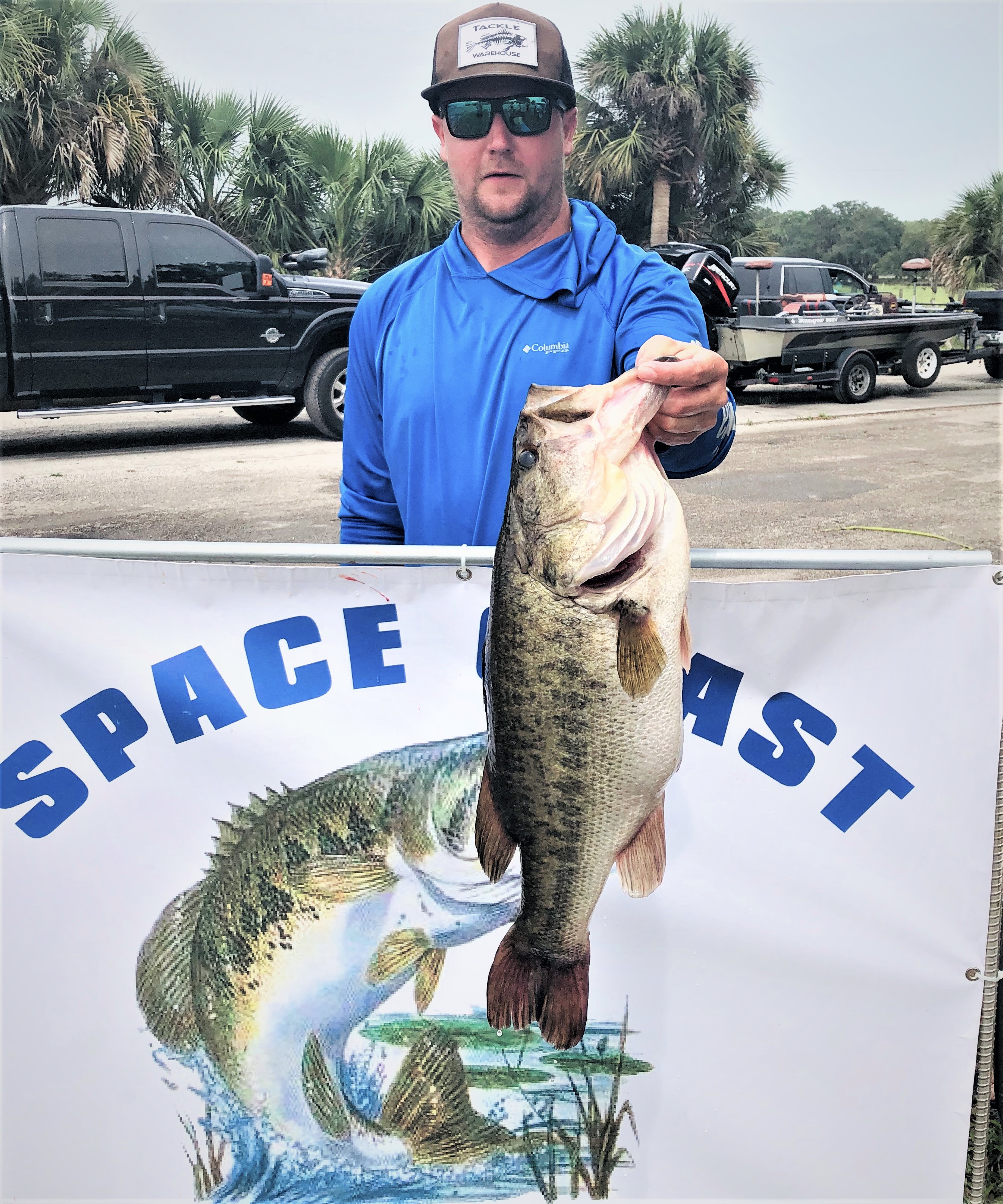 First place was easily taken by Matt Hinman and Gary Hinman, who traveled to West Lake Toho and came back with an impressive five bass limit weighing in at 27.81 pounds. Their megabag was capped off by two giant bass that were equally impressive. Gary Hinman bested his brother with a 9.67 pounder which set a new record for Club Big Bass of the Year followed closely by Matt's 9.56 pounder which was also better than the previously set record. They reported that swim jigs was the weapon of choice in the hydrilla grass fields of West Lake Toho. This is the third heaviest bag ever to be weighed in a Space Coast Bass Finatics club tournament. CONGRATGULATIONS !