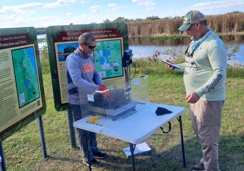 Typical day for November at Garcia, nice sunrise, crowded launch ramp and parking, abundant mosquitoes, no breeze, temperatures around 59 to 60 degrees and a crescent moon hanging in the eastern sky, water temperature at 65^. Perfect conditions for the third tournament of the season. Boats were squeezed in and around the ramp and the air boat pavilion as best as you could, even with the arrival of another club from Fort Lauderdale with 6 boats. They were very accommodating and let us get going and timed their weigh-in at 2 pm so we would not be on top of each other. Thanks gentlemen. So with the sun approaching Alan Elder proceeded to get the 14 club boats out on the water as quickly as possible.