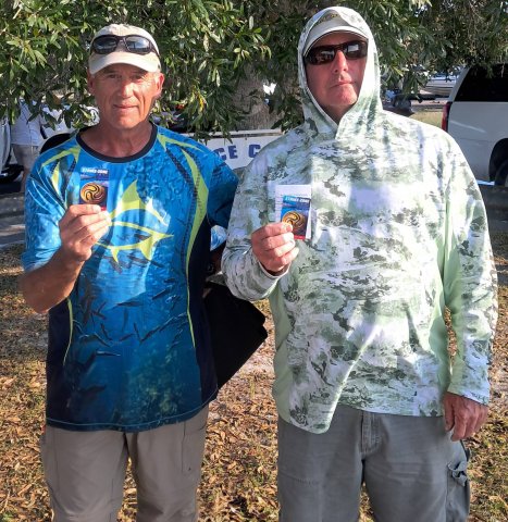 The killer Bees of Brian Cole and Brian Davidson landed second with a very good bag for the day totaling 13.21 pounds. They failed to turn in a chip and incurred a 5 point penalty which you will need in the AOY race.