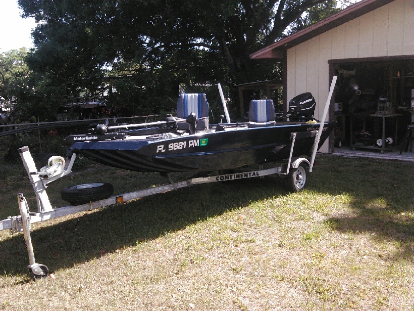 You club president's brother-in-law is selling his 15.5 foot welded aluminum boat pictured here. It has a 25 ETEC still under warranty, carpeted, front seat steer and throttle, on board charger, live well, lockable storage compartment, 55lb trolling motor foot control, galvanized trailer, very few hours used. Around $6000.00. If you're interested, call Eddie at 407-709-1211.
