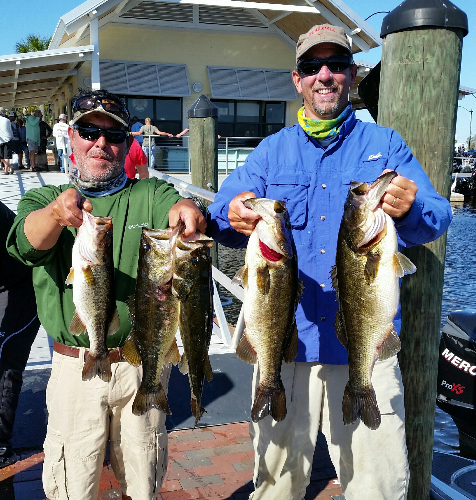 Taking the long ride thru Lake Toho, past the locks, down a long canal past Lake Cypress, down another canal to Lake Hatchneha, south thru another canal and into Lake Kissimmee, the third place finishers of Mike Neal and Brian Wical returned with a 14.51 pound limit and the second largest bass of the day at 7.02 pounds. Throwing a swim jig accounted for most of their catch.