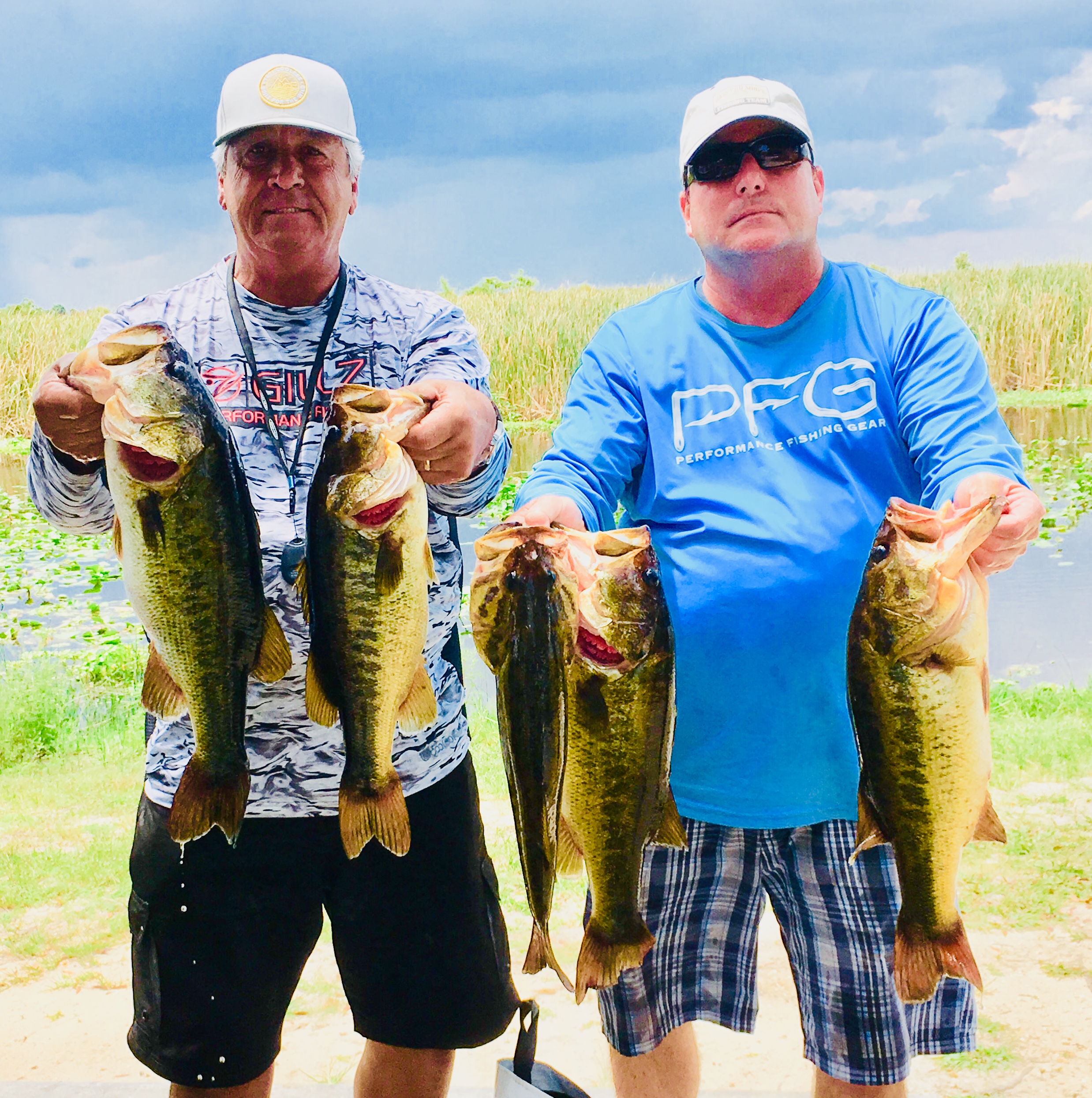 First place was easily taken by Bill Groseclose and Fred Reid, who posted a huge limit of Florida black bass weighing 23.37 pounds. They reported that they used a sinko type bait from Elite Catch Bait company in thick hydrilla and around pads. Their bag included a nice 5.67 pounder and was capped off four more over four and a half pounds for a solid limit.