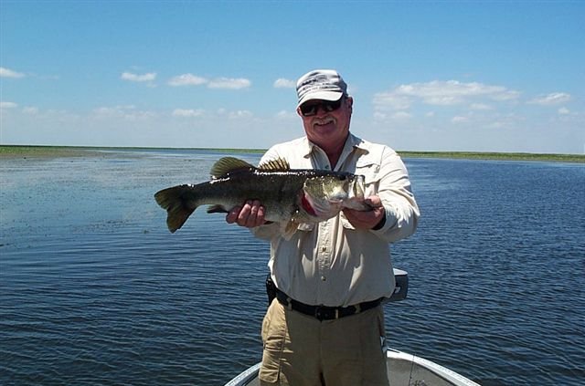 Mike Hampton with a 6.5 pounder he caught on Friday while prefishing for the Okeechobee tournament. (Photo by Tim Kopf)