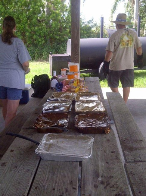 In the foreground is our season opening barbecue spread, but the real subject of this photo is in the background. That's Mrs. Kopf and Clay Pudvah, the two people that slaved through the night and into the afternoon to prepare and present the barbecue. Many thanks to you! It was delicious.