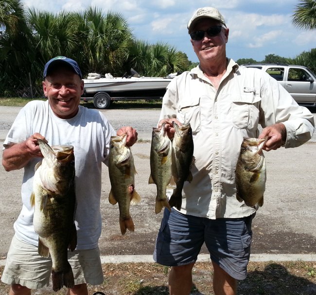 Tim Iler (left) and Larry Cruce (right) with 18.64 2nd place at Lake Kissimmee on April 27, 2014. They reported catching them mainly on jerkbaits in Lake Kissimmee. (Photo by Mike Calloway)