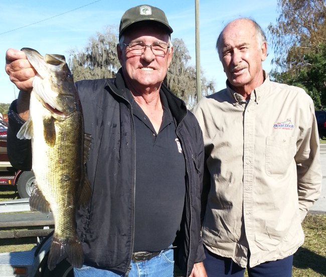 That's Bob Barnette (left) and Tom Southwick (right) with a solid 5.16 post frontal bass from our West Lake Toho tournament on January 25, 2015. Photo by Mike Calloway.