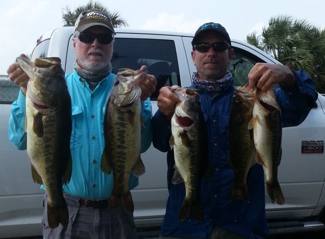 Mike Calloway (left) and Cliff Semonski display their 5 fish limit of 18.41 pounds from Lake Kissimmee on April 26, 2015. That effort was good enough for 2nd place in the tournament.